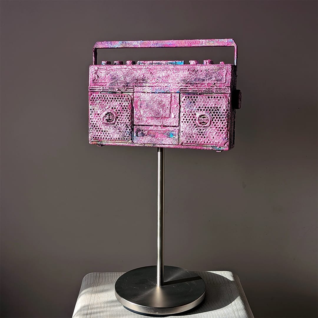 Featuring a heavily textured distressed surface aesthetic created from multiple layers of enamel paints, rendered with fine silica and diamond dust.